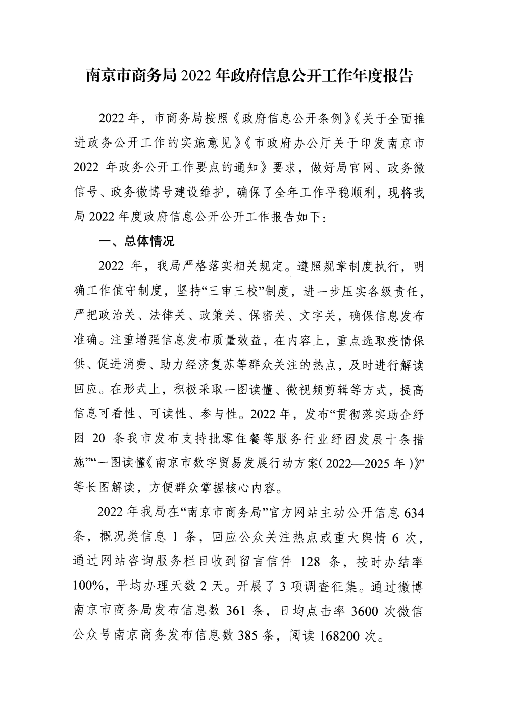 南京市商务局2022年政府信息公开工作年度报告