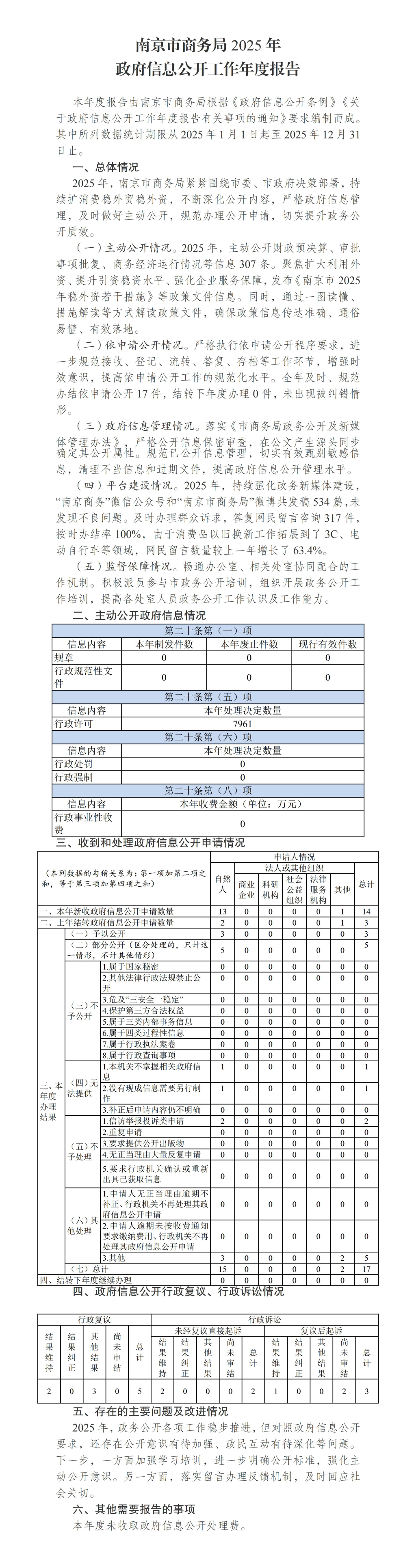 南京市商务局2025年政府信息公开工作年度报告