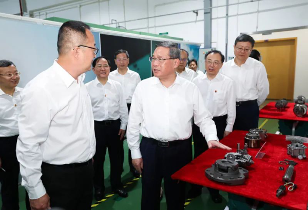 7月26日至27日,中共中央政治局常委、国务院总理李强在上海市调研自贸试验区建设。这是27日,李强在沃尔沃建筑设备(中国)有限公司详细了解企业推进再制造等情况。新华社记者 黄敬文 摄