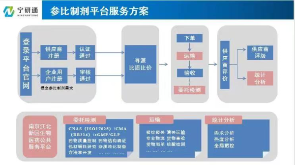 目前,从事仿制药研发的医药创新企业,在自行寻找境外参比制剂原研厂商及供应商的过程中普遍存在耗时长、价格高等困难。南京片区打造“宁研通”公共服务模式,以专业的服务平台为依托,打造“货源渠道+质检保障”的一站式参比制剂综合服务体系,实现集采购、通关、检测、储存等核心环节于一体的全链条服务,助力企业优化参比制剂进口采购流程,并提供专业化质检服务以确保购入产品的质量效果,为医药创新企业仿制药研发打下坚实基础。