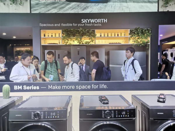 本届广交会,南京创维电器积极扩大展示面积,展位规模位居家电展区第二,共有38款洗衣机和22款电冰箱参展,其中38款洗衣机全部是公司新品。企业相关负责人汤昌军介绍,为了强化洗衣机和冰箱多元化产品布局,创维产品设计兼具科技感与时尚感,从外观、功能设计、价位段等多维度满足不同消费群体的需求,现场人气非常旺。