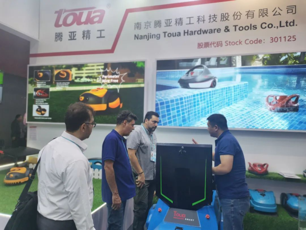 企业展位上,绿色草坪上来回工作的几款智能机器人吸引了不少客商的目光。企业外销经理陈秋颖介绍,其中一款外观为黄色的机器人割草机是新品“首秀”,可以通过AR技术识别草坪、主动辨别障碍物。外观为红色的智能泳池清洗机,也是企业新品,可以对泳池的池面和墙壁进行清洗。“对于本届广交会,我们做了充分的准备,展出的工具涉及全品类,可以满足各类采购商的需求,现场洽谈非常火爆。智能机器人是我们将要重点推广的新品,希望借助广交会的平台,向全球客商展示企业产品和品牌。”