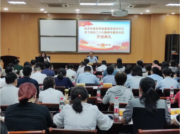 为进一步推动党的二十大精神在全市商务系统落地生根、开花结果,以党的二十大精神为指引推进全面从严治党向纵深发展,8月2日上午,全市商务系统基层党组织书记学习党的二十大精神专题培训班在南京财经大学福建路校区正式开班,市商务局一级调研员孙勇出席开班仪式并进行动员讲话,80名商务系统基层党组织书记参加。