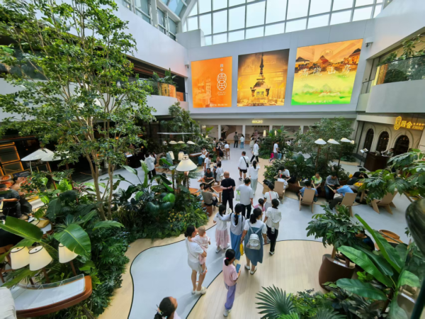 南京德基广场以文化为灵魂、科技为工具、商业为载体,打破传统商业“卖商品”的单一逻辑,聚焦“艺术、商业、科技”融合,通过打造“体验式消费生态”,逐步构建起差异化的发展模式。以文化为锚点,打造“商业+艺术”生态,运用AR、VR技术打造“人物入画、实时跟随”的沉浸式互动展《金陵图》,累计接待客流超120万人次,线上曝光超2.2亿人次,形成“先看金陵图,再逛南京城”的城市级商文旅IP。以首店为引擎,激活“首发+业态”创新,开放“花园食光”2000平方米立体花园区域,打造“自然景观+首店餐饮”的组合,举办LV全国性硬箱家居展、香奈儿高级珠宝展、宾尼法利纳合作系列全球首展,累计吸纳首店200余家,形成梯度化品牌矩阵。以科技为支撑,升级“智能+体验”服务,推出“24h”商业新模式,打破传统营业时间限制,打造“全天候社交与消费空间”,推动40余家品牌完成24小时科技互动装置部署,260余家品牌入驻线上平台,形成“科技+体验”闭环。以细节为亮点,打造“网红+公共”空间,升级公共卫生间为“艺术盥洗室”,将艺术美学与实用功能结合,联动艺术市集主题,形成“可感知的文化空间”,成为小红书、抖音等平台的网红打卡地。